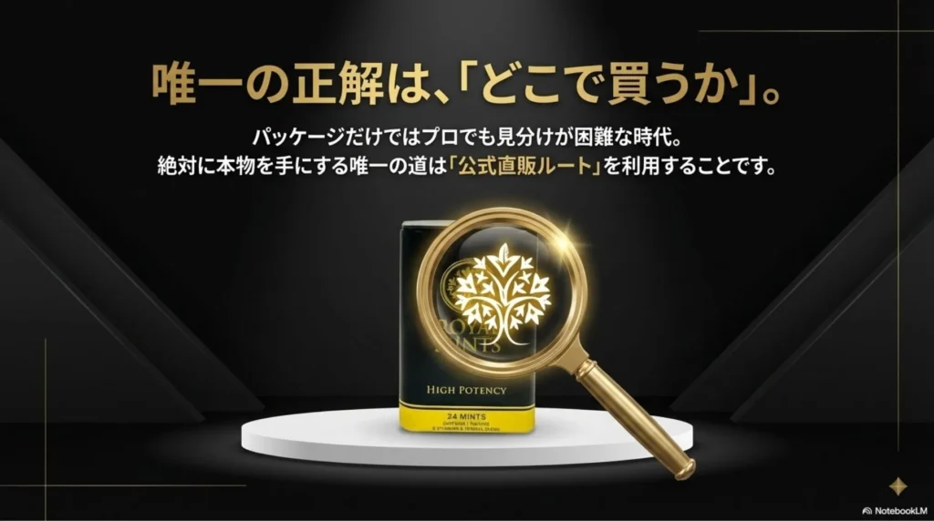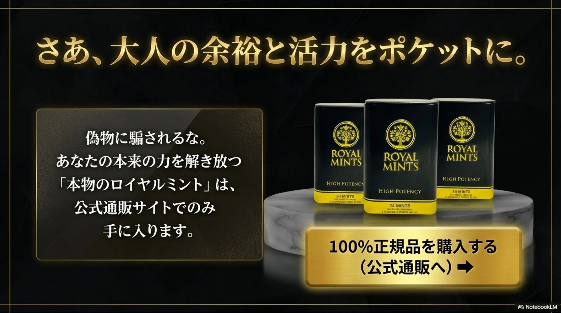 偽物や粗悪品のリスクを完全に排除し、最高品質のロイヤルミントを手に入れる唯一の手段。それが「公式通販サイト」でのご購入です。
